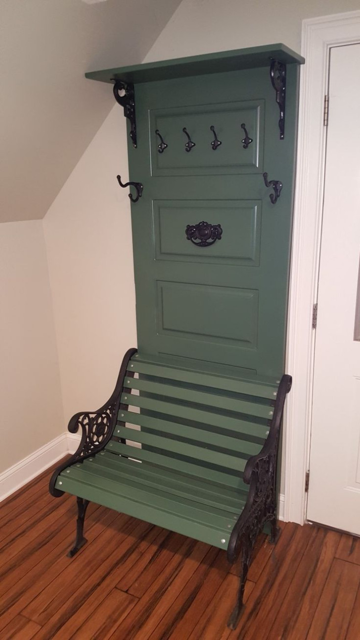 For your entryway, why not create an attractive coat rack and bench by recycling an old door?
