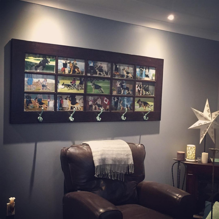 Glass-panelled doors are perfect for creating wonderful wall-mounted picture frames to hold all your precious memories and works of art. You can also attach hooks to the base to create a unique coat rack for your entryway.