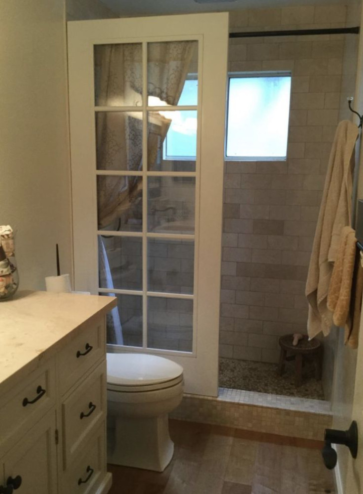 And what if you convert your old, glass-panelled door into a stunning shower cubicle partion, like the one shown here?