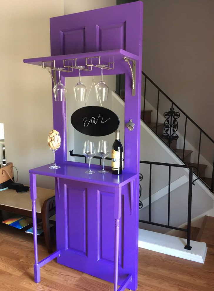 Dedicate a corner of your living room or kitchen to set up a wet bar; an old door can easily be transformed into the perfect bar unit to hold your glasses and bottles and you can even add a useful bar counter.